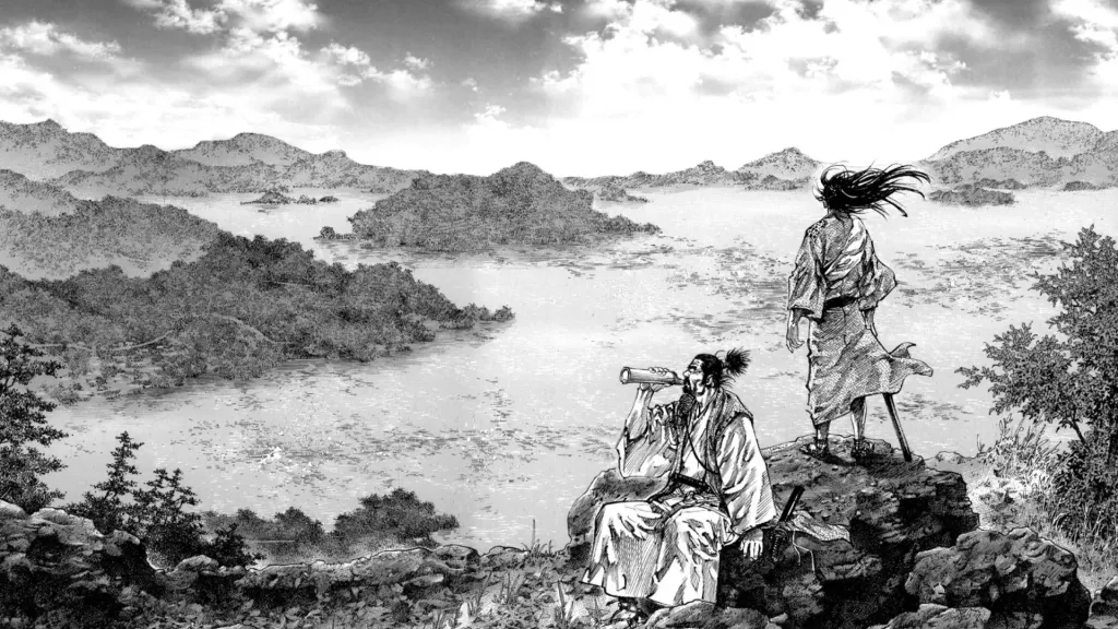The manga has a poetic quality to it, which I assume is because of the story’s origin as a philosophical text. For example, Musashi observes a flower cut beautifully by a legendary samurai and asks to speak to the one who sliced it. There are many other examples, but I think the relative simplicity of the narrative allows the characters, philosophy and art to shine.