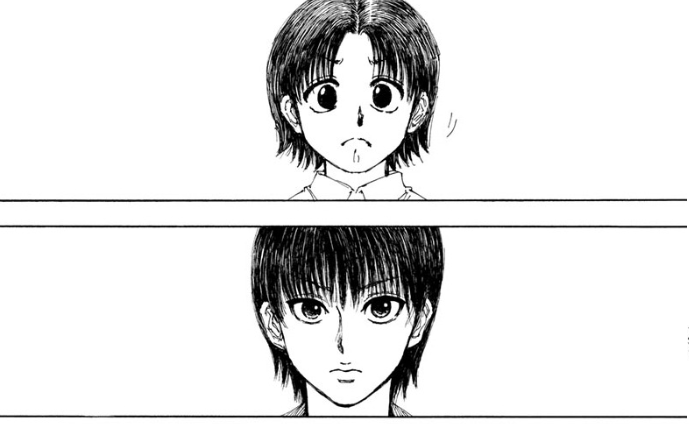 Without using a single word, Togashi illustrates how much of an impact Sarisa’s death had on him. The tie has been severed, but as we see in the below panel, which wraps up the flashback… it has not been forgotten.