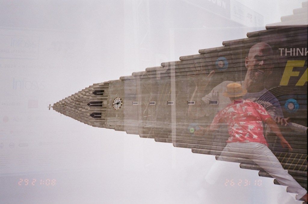 I think this might be my favorite film photo I’ve ever taken. It’s an accidental double exposure. The first photo is Jackson playing this interactive game at an ATP 250 pro tennis tournament (Newport Hall of Fame Open, which is played on grass). I accidently opened up the camera mid roll, and it messed up some of the film. The other image is the famous Hallgrímskirkja church in Reykjavik, Iceland. The photo of the church overlaid on top of the image of Jackson creates this really neat effect. The jutting pillars of the church create this feeling of motion and speed.
