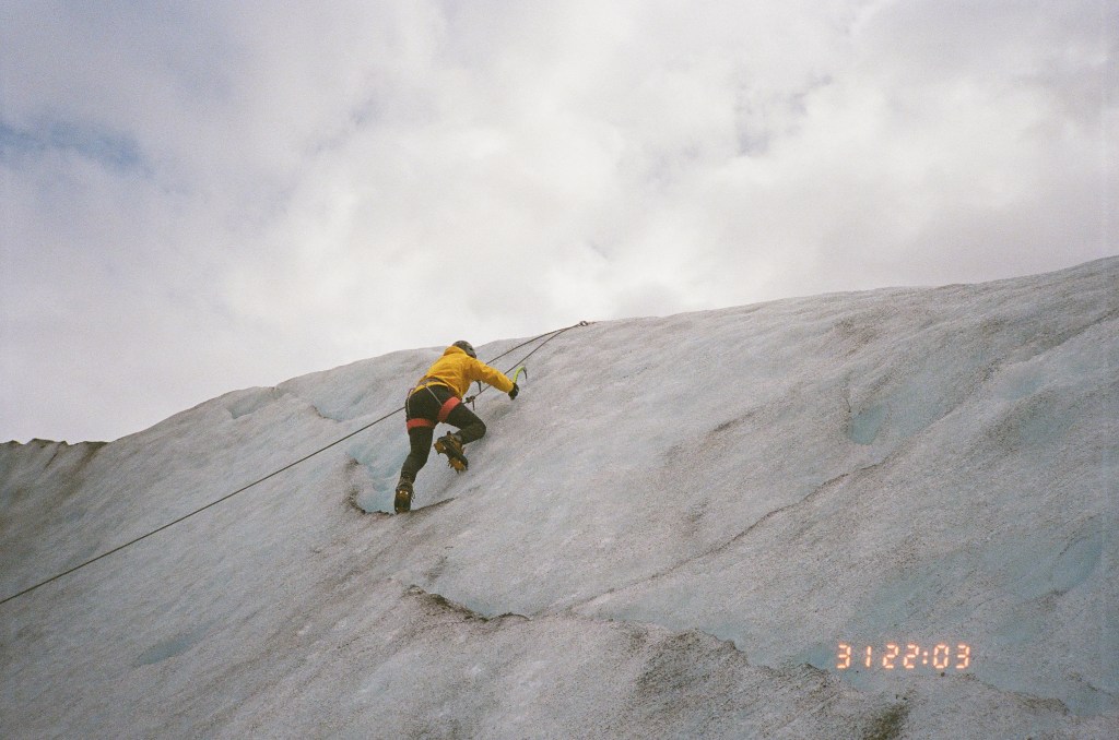 Yasser and I did a few hours of ice climbing a glacier! Ice climbing is actually a lot like regular outdoor sport climbing. The big difference is that you have these sick ice picks that you’re drilling into the wall. The interesting thing is that the ice picks are actually mostly there for balancing. The real way you attach yourself to the wall is by kicking your shoes in a 90 degree angle, as they